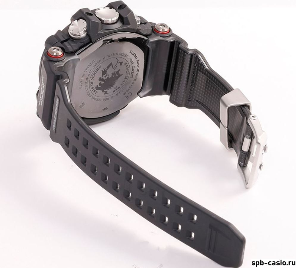 Помимо топового функционала в модели использованы и премиальные материалы: карбон в ремешке, устойчивое к царапинам сапфировое стекло с антибликом и, впервые в часах G-Shock использована керамика, именно из керамики выполнена задняя крышка данной модели. Не забываем и про абсолютную ударопрочность и водозащиту в 200 метров.