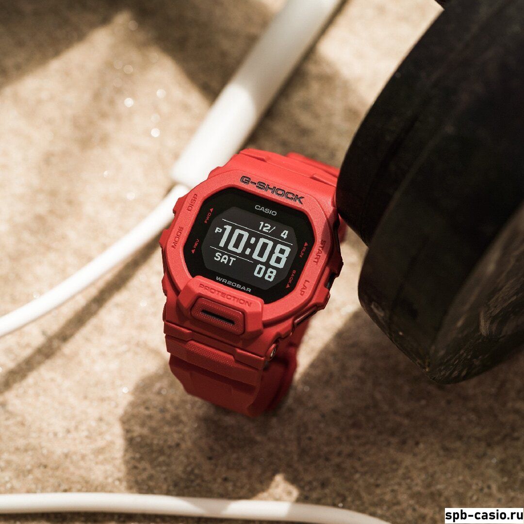 Релиз середины 2021 года — новая цифровая модель Casio G-Shock из серии GBD-200 в ярком-красном корпусе с черным инверсионным MIP-дисплеем. Помимо стильного внешнего вида, часы обладают шагомером и функцией Bluetooth. Блютус позволяет удобно отображать все метрики с часов на экране смартфона, а также выводить на часы уведомления о входящих звонках, сообщениях и имейлах.
