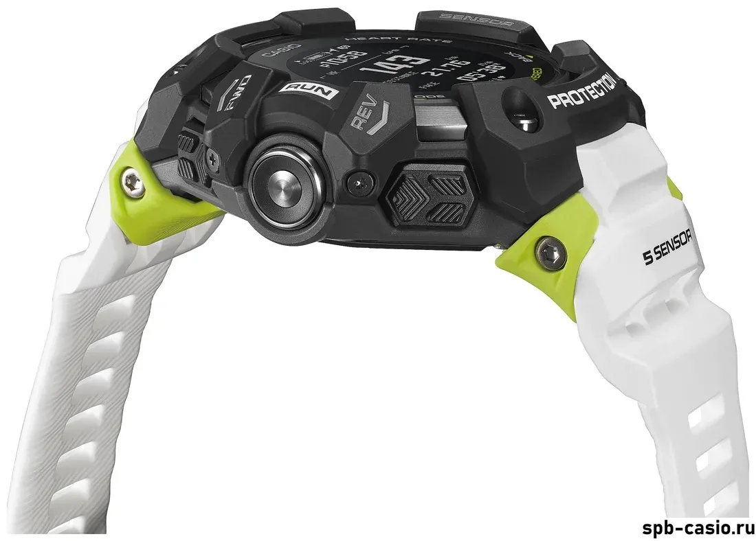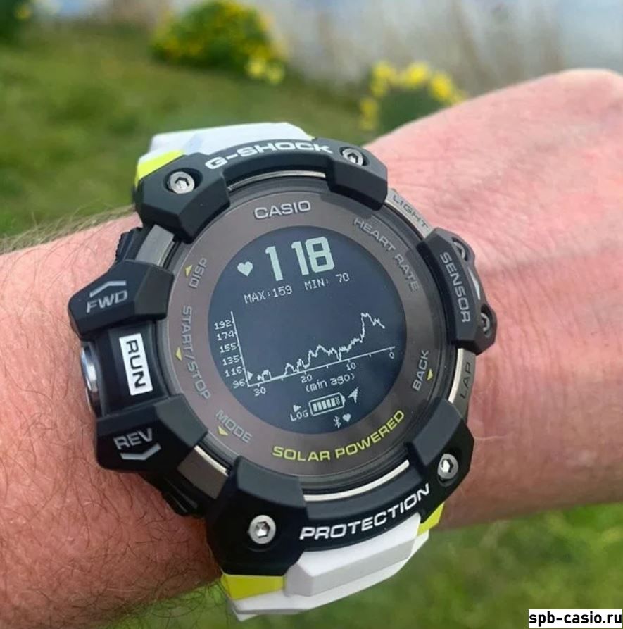 Перед вами первые часы Casio G-Shock с пятью датчиками из серии GBD-H1000. Помимо супер стильного внешнего вида, на борту модели присутствует: термометр, барометр, высотомер, компас, пульсометр и шагомер!