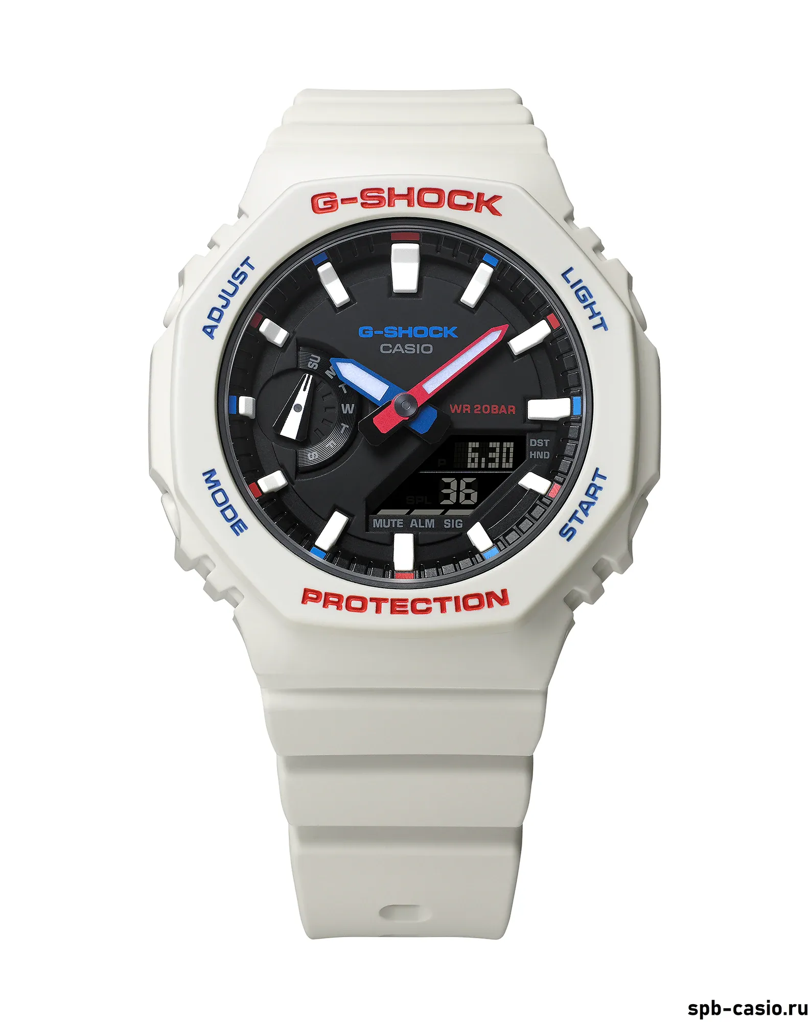 Часы обладают технологией Carbon Core Guard: их модуль защищает легкий и сверх-прочный полиуретановый корпус с углеродным армированием, а циферблат покрыт закаленным минеральным стеклом. Конечно же, не стоит забывать про стандартную для джишоков ударопрочность и водозащиту в 200 метров, функции секундомера, таймера, мирового времени, удобную функцию складывания стрелок для считывания информации с дисплеев, а также яркую двойную подсветку циферблата и дисплея.