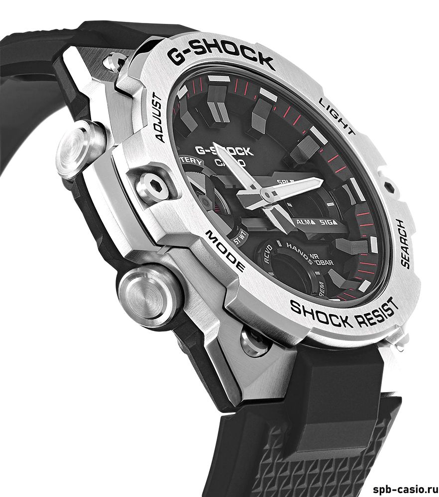 На борту модель на стальном браслете имеет: солнечную батарею, технологию Bluetooth для синхронизации с вашим смарт-фоном, автоматическую двойную подсветку дисплея и циферблата, водозащиту в 200 метров и еще более десятка функций.Напомним, в коллекции G-STEEL модели приближаются к классическому образу наручных часов, при этом сохранив уникальную джи шоковую начинку, что делает эти часы несравнимо прочнее и функциональнее, чем их механические собратья.