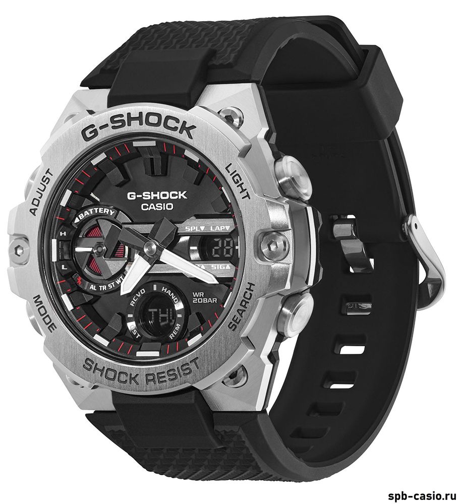 релиз 2021 года из серии G-STEEL в стальном корпусе с черным стелс-циферблатом. Новый переосмысленный брутальный рубленный корпус GST-B400 из стали и полимера обладает толщиной всего 12.9 мм, что на момент выхода данной линейки является абсолютным рекордом для стальных джишоков.