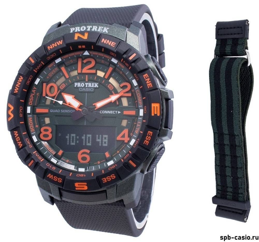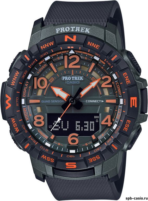 Синхронизация по Bluetooth со смартфоном на котором запущено приложение PRO TREK Connected. При подключении к смартфону часы корректируют текущее время.