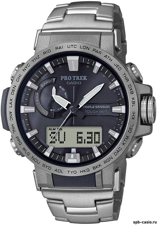 Флагман PRO TREK в корпусе PRW-60 со стальным безелем и титановым браслетом.
