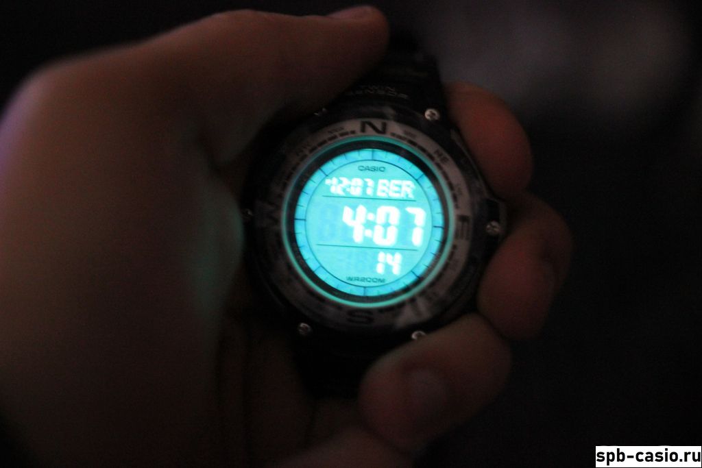 Благодаря электролюминесцентной панели, обеспечивающей освещение всего циферблата, облегчается считывание данных. В часах есть функция послесвечения - несколько секунда после того, как Вы нажали на кнопку подсветки, подсветка работает.