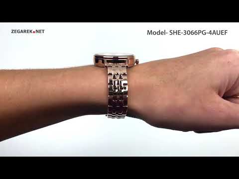 Стильная женская модель Casio Sheen из 3000-й серии в элегантном дизайне выполнена из высококачественной стали цвета розового золота, а циферблат украшен кристаллами Swarovski®.