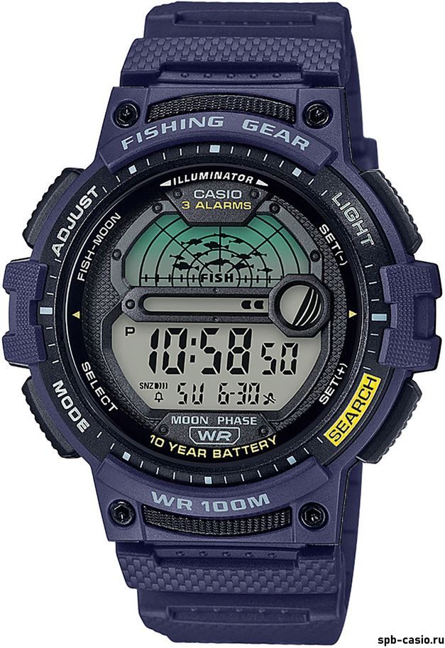 Способ отображения временицифровой (электронный)Цвет корпусаСинийЦвет браслета/ремешкаСинийЦвет циферблатаСерыйФормакругМатериал корпусапластикМатериал браслета/ремешкакаучукКласс водонепроницаемостиWR100 (10 атм) - ныряниеЦифрыарабскиеСтеклоакриловоеИсточник энергииБатарея 10 летПодсветкаестьОтображение числаестьУказатель фазы ЛуныестьСекундомерестьТаймер обратного отсчетаестьБудильникестьТаймер рыболоваестьДиаметр корпуса47 мм